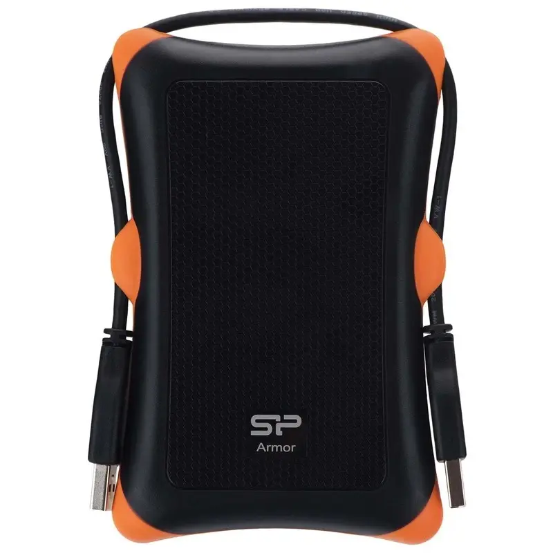 هارد اکسترنال سیلیکون پاور مدل Armor A30، با ظرفیت 1 ترابایت، دارای رابط کابل USB 3.2 Gen 1، سازگار با ویندوز و مک، مقاوم در برابر ضربه، دارای کابل قابل اتصال به بدنه